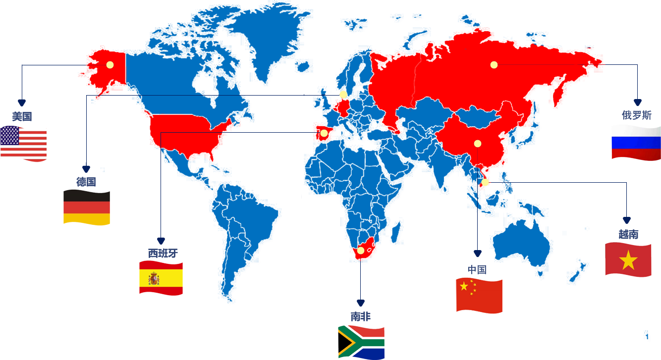 與德國、美國、西班牙、南非、俄羅斯、越南均有合作關(guān)系。