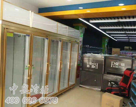 案例名稱:塘廈紅業南西路世紀易購連鎖生活超市豪華款黃金門五門冷柜--東莞冷柜--東莞超市冷柜